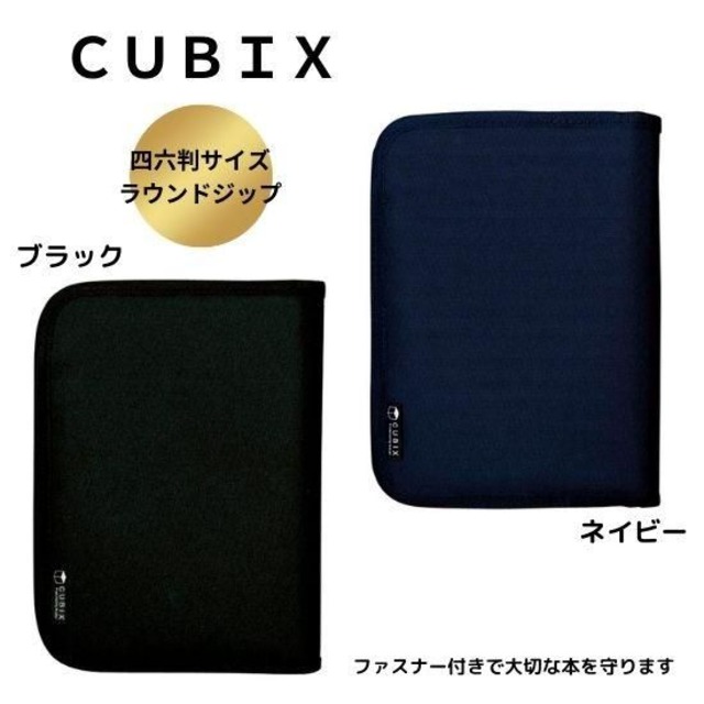ブックカバー 四六判・B6判サイズ ラウンドジップ エムプラン(CUBIX・キュービックス) ネイビー、ブラック2色展開