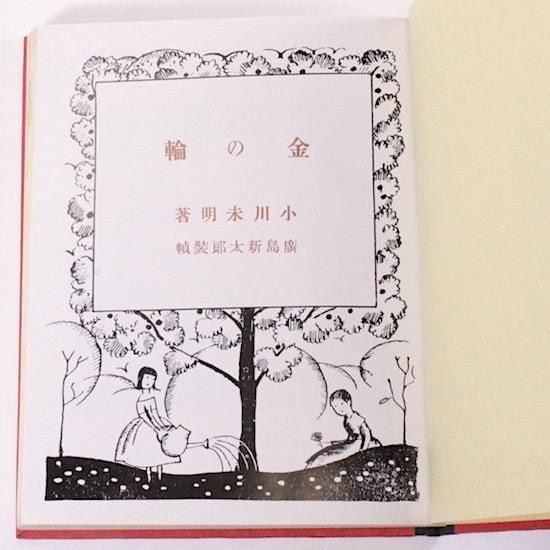 大正9年(1920)刊行された小川未明の第三童話集の復刻版。装丁は広島新太郎で本文活字が緑色で刷られ、挿絵は朱色のアンカット本で趣があります。