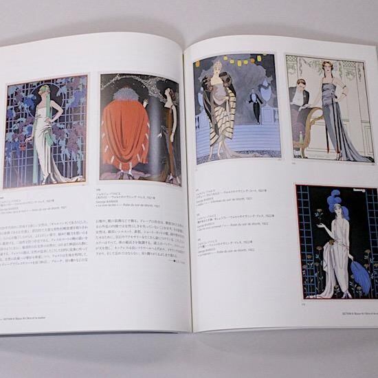 ジョルジュ・バルビエなど当時のイラストレーターの美麗なファッション画も掲載されています。表紙が本体をくるむ形の凝った作りの図録です。